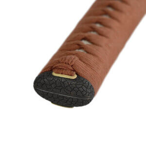 Der Griff ist mit einem Band (Ito) aus Baumwolle gewickelt. In die Griffwicklung ist Hishigami Papier eingewickelt. Die Same-Einlagen sind echt. Der Griff (Tsuka) ist gut an die Klingenangel angepasst und für eine authentische Optik wird ein Mekugi verwendet. Der Griff hat im Allgemeinen eine außergewöhnlich hohe Verarbeitungsqualität für diese Preisklasse.