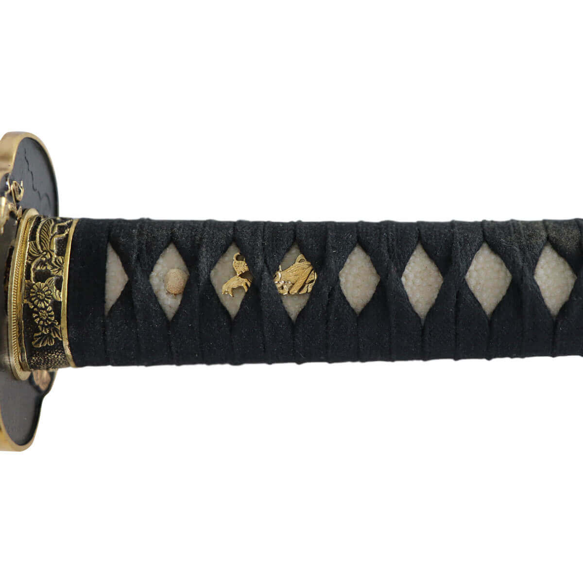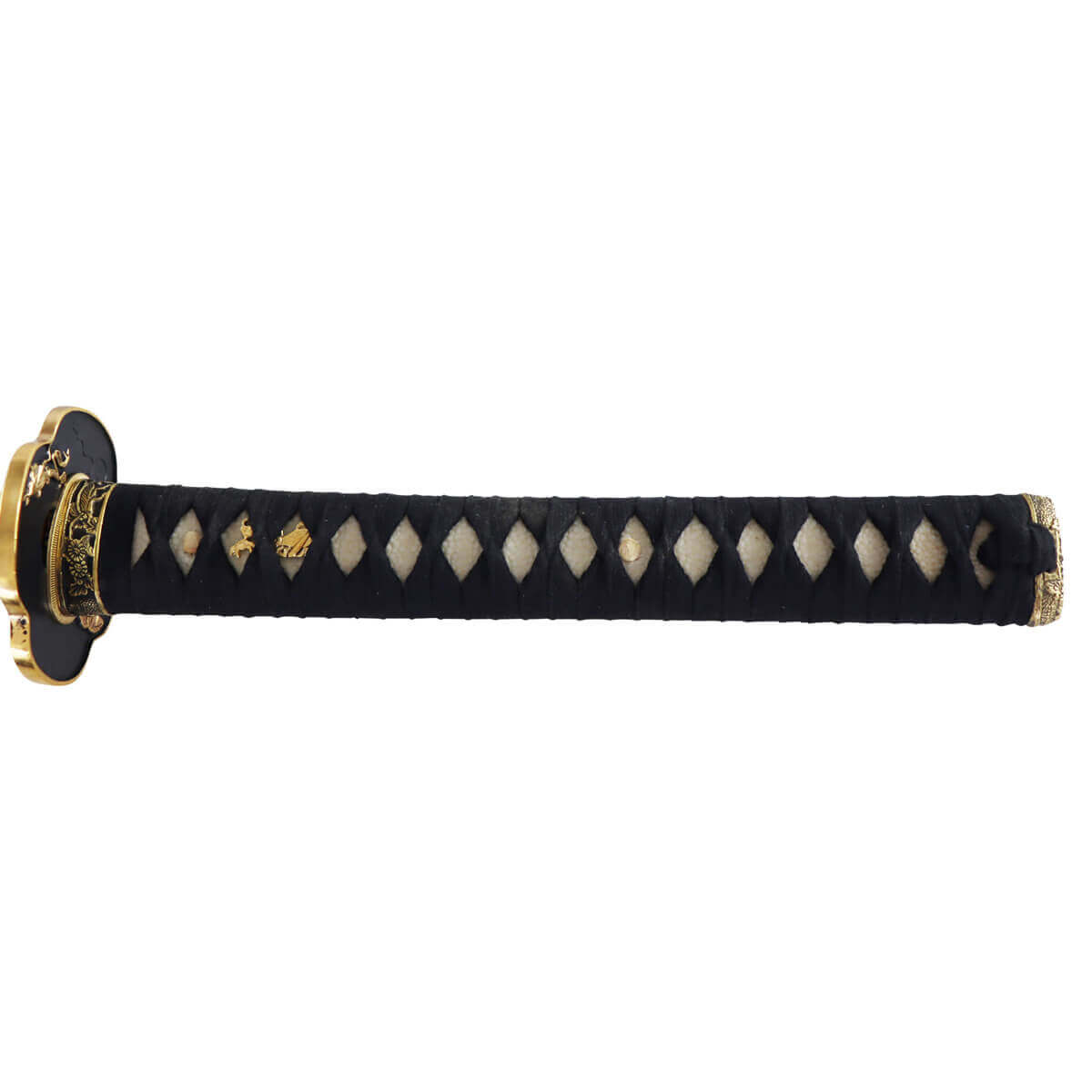 Schwarz lackiert in Ishime Gestaltung. Mit Shigeuchi Sageo in Schwarz-Gold.